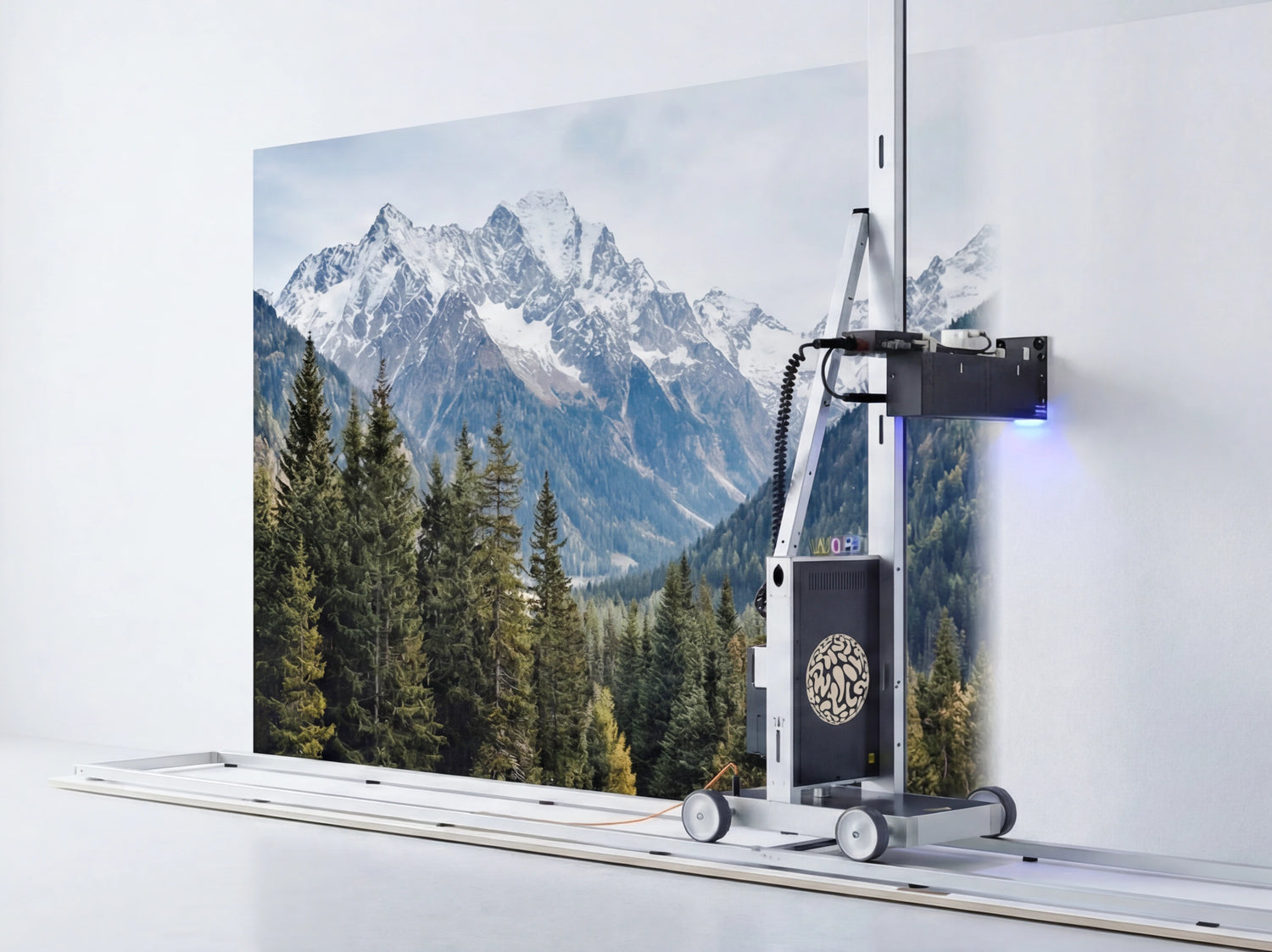 We bring our machine to you and print directly onto your wall with ultra-sharp detail and zero mess.